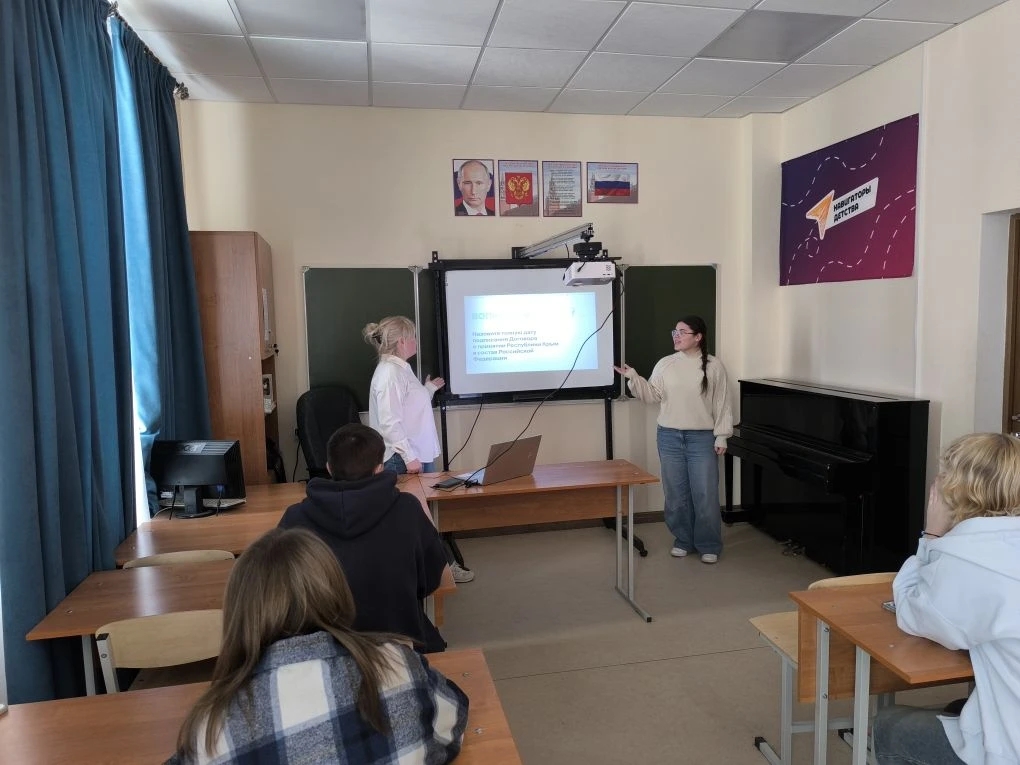 18 марта — День воссоединения Крыма с Россией, отмечающийся с 2014 года. В этот день в 2014 году Республика Крым и город-герой Севастополь официально вошли в состав Российской Федерации. Крым, с его древней историей и важным стратегическим положением на Чёрном море, на протяжении веков был неразрывно связан с судьбой России. К памятной дате советник директора по воспитанию Таганрогского музыкального колледжа Белоус Дарья Викторовна совместно с Движением Первых в рамках всероссийской акции «Одна страна – одна история» и со студенческим активом провели викторину на знание истории Крыма. | |